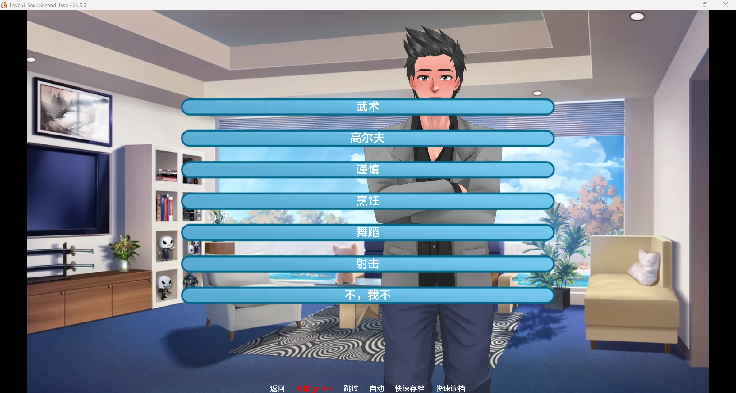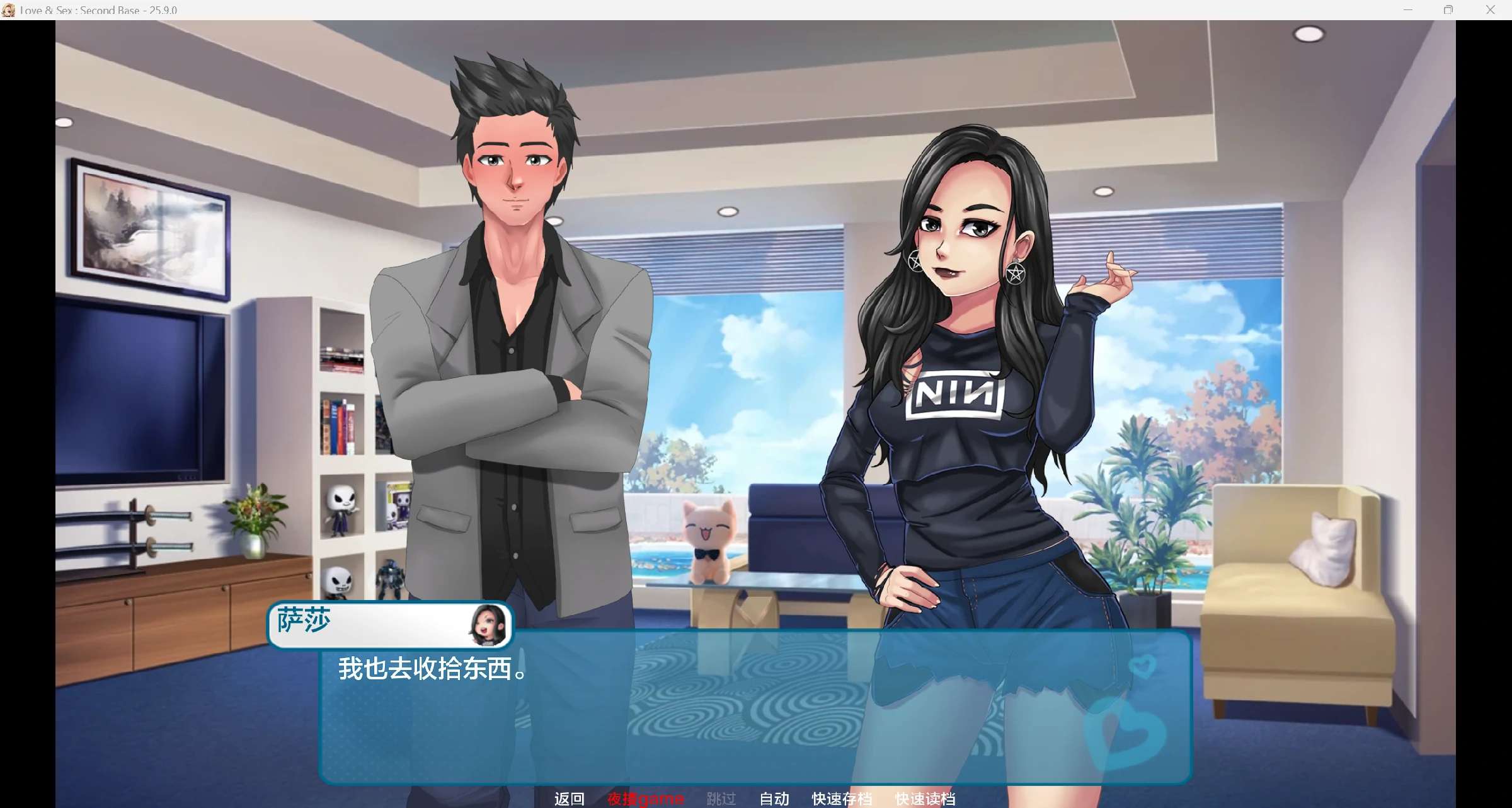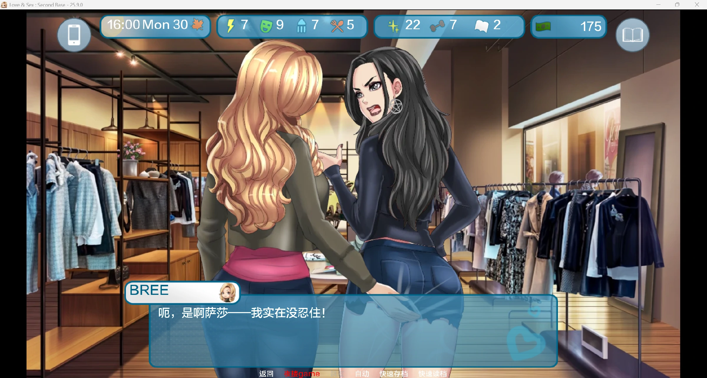 《爱与性:二垒》是一款约会模拟游戏,游戏中一位极客(希望是你)将与两位性感女郎成为室友,并在日常生活中结识其他女性。游戏的主要目标是获得好运,或许能娶到梦中情人。为此,你必须做出选择,提升自身属性。